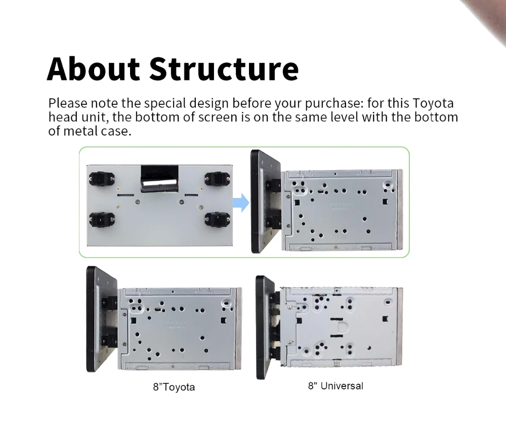 New 8 Inch Double Din For Toyota Universal Car Radio Built in DSP 4GB+32GB Andriod 8.1 Octa Cores Wifi Bluetooth GPS Navigation. Desciption: 1.Touch Screen size: 8" 2.RAM: 4GB 3.Flash: 32GB 4.Resolution: 1024*600 display 5.CPU: SC9853 Octacore 6.Maximum power: 4*45W 7.Voltage: DC 12V 8.Item Size: 209*127mm 9.System:Android 8.1 10.Interface:USB/RCA Feature: 1.support1080Pvideos and SupportCarplay. 2.Eight Core 64 bitMore stabilityandHigher speed. 3.Material Design.4.support Microphone/Bluetooth/Wifi/GPS/3G&4G Network. 5.support steering wheel control. If your car hasJBLsystem and canbus, please keep us informed before your purchase. And you need to buy the needed harness by yourself. Notice : This head unit does not support video out. Function Details: Note: ARKRIGHT head unit, do not support like below: iPod, original car GPS antenna, original car back up rear camera, original car bluetooth, original car USB as well original car Microphone. Please take care do not upgrade ROM from Malaysk on forum xda-developers or upgrade others brand app which not provide from ARKRIGHT. Because this kind of action will broken head unit. If you update it by self, you will face the issues like can't update yourmarshmallowanymore, and you will lost the service of head unit warranty. About shipping: 1. If there is customs taxes,buyers need to pay for it.If you have special request,please contact us when you make order. 2.Import duties, taxes and charges are not included in the item price or shipping charges. 3.Remote area fee excluded, for addresses listed in the Remote areas on DHL/Fedex website, will be charged an extra US$30 4.Usually we use DHL and EMS.if you can choose DHL we suggest you use it. if you prefer other express, please contact with us in time. Please give us your (mobile) phone number during checkout for shipping use, this is very important. All parcels will be sent within 1-3days usually upon receipt of payment (except weekend and festival) Installation : Please just install this unit by professional technician, also ask them to test it first before installation Before our sending, we have checked all our items carefully, if you received a broken defective item, just keep the original package and make a photo to us within 3 days Note: Installation Fees are out of our control, they must be paid by Buyer. The price includes no VAT and customs tax, if any fees happen, buyer should pay it by himself Buyer is responsible for shipping costs incurred shipping products back Warranty and return All our items are tested 4 times to ensure working properly before shipping and come with a 12-month Manufacture Warranty. The warranty will not cover damage from improper installation, accident, misuse, abuse, improper wiring, and incorrect voltage operating the unit against the instructions in the owner's manual. The validtime for replacement is 14 days from the date of receiving the item, if this item has any problem when arriving, please feel free to contact us and please note keep it in original condition. It is buyer's responsibility to pay for return postage and ship the item back to us. Please inform us of the reason of your order revocation and send us a clear picture or a video as a proof. Items returned to us without a report will not be processed. Service: Good Service to the client, Quality is most important, all clients are our friends Pls feel free and contact us if you have any questions, we will try our best to solve it.
